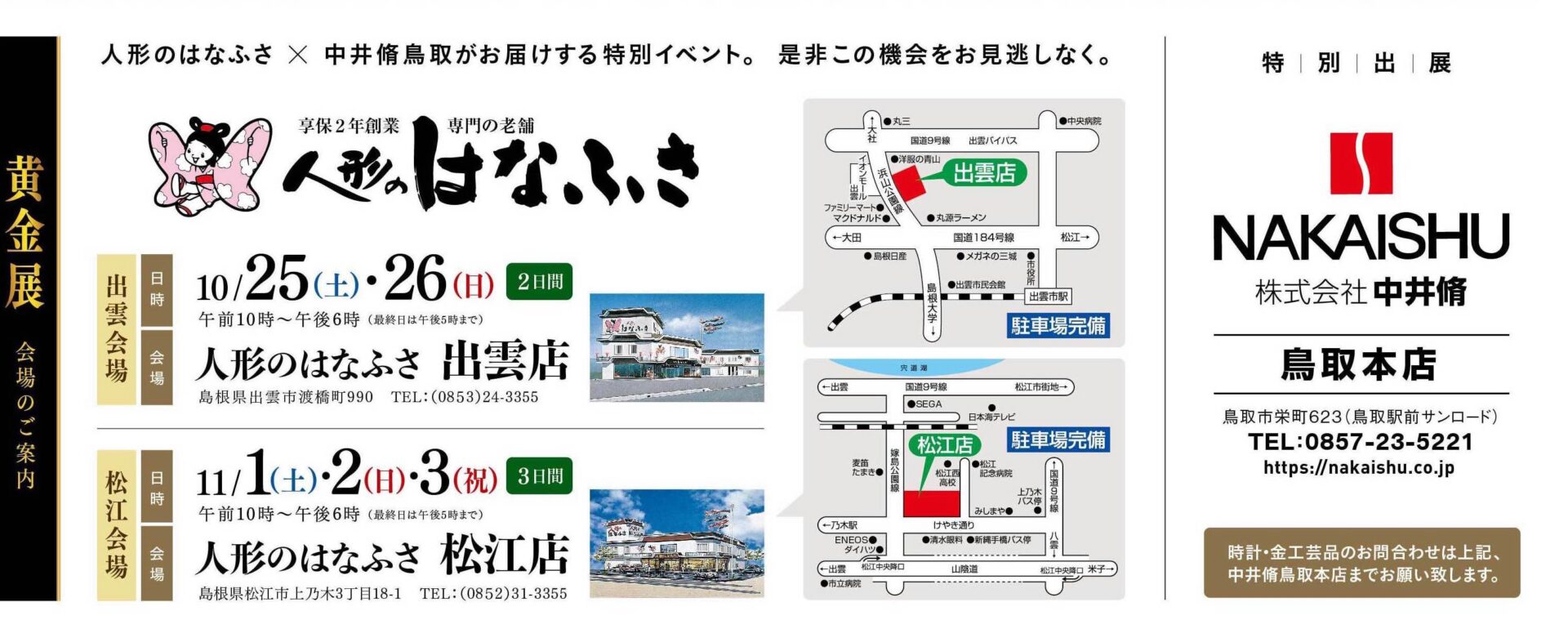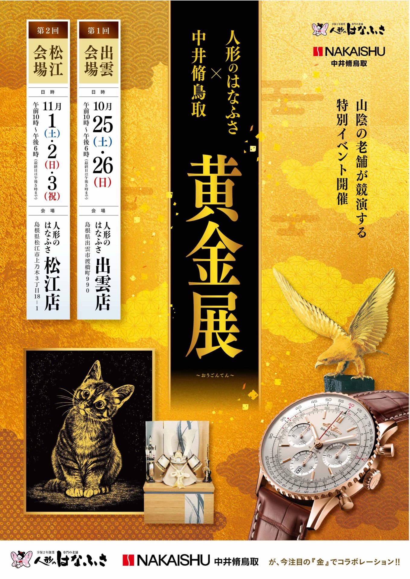 山陰の老舗がコラボレーション!人形のはなふさ×中井脩鳥取「魅惑の黄金フェア」開催