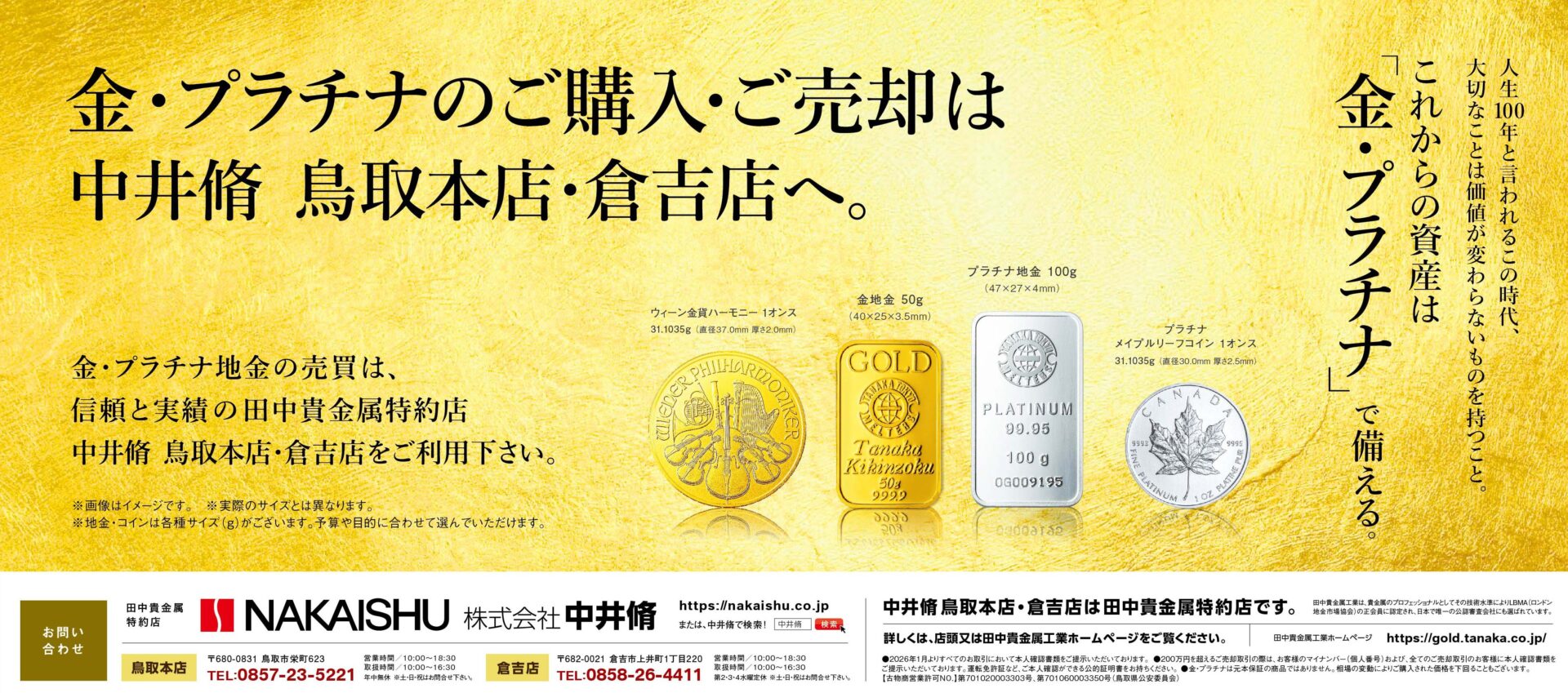 金・プラチナのご購入・ご売却は中井脩鳥取…- 2026.03.18