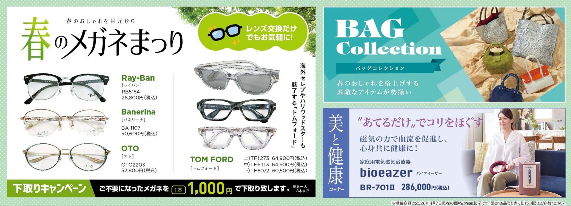 もちろん、新作ウオッチ、ジュエリー、メガネ、健康商材、バッグなどなど